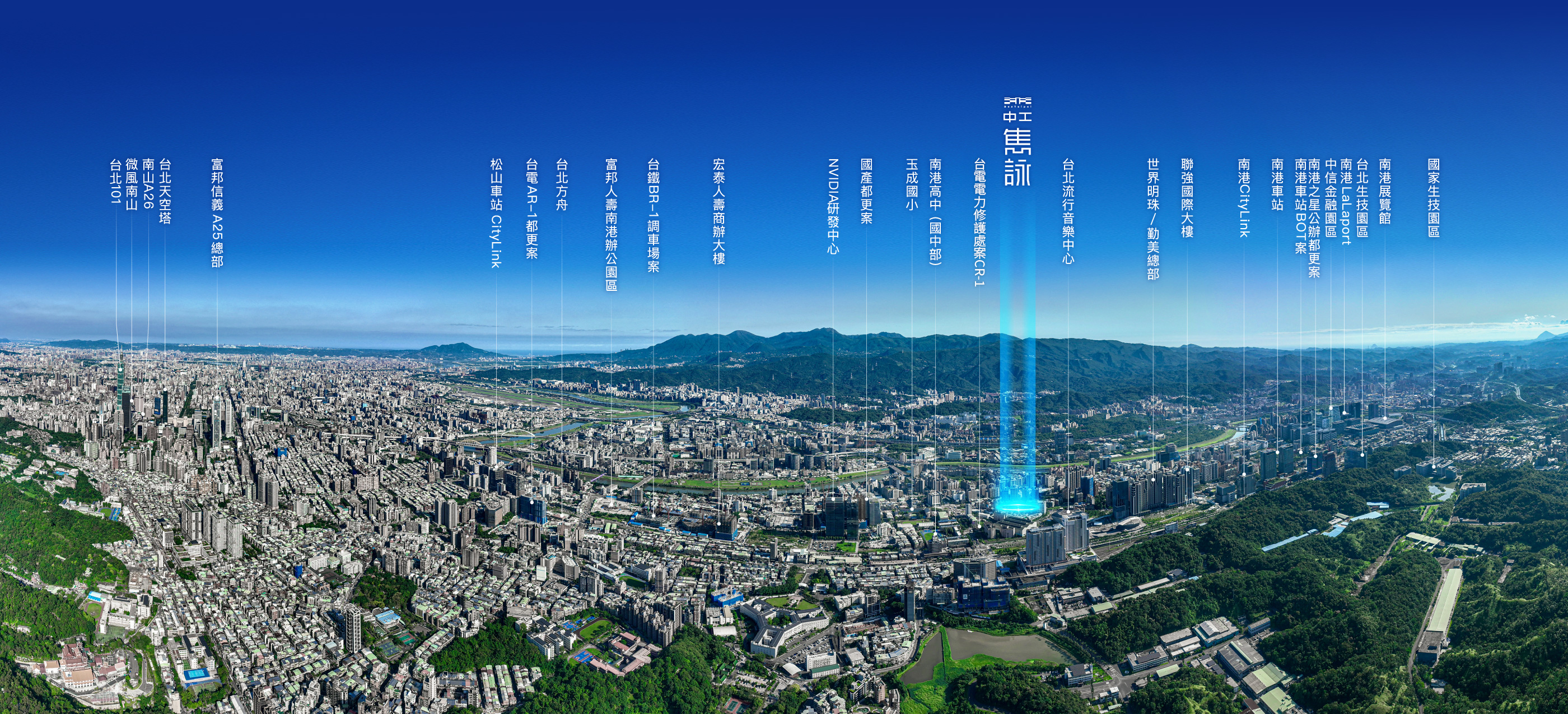 南港大型建設量體一線排開,台電AR-1都更案、富邦人壽南港辦公園區、台鐵BR-1調車場案、輝達研發中心、國產都更案、台電電⼒修護處案CR-1、世界明珠/勤美總部、南港車站BOT案、南港之星公辦都更案…軌道經濟再造城市高峰,企業商辦交匯綠意繁華,形塑科技菁英的高端生活。